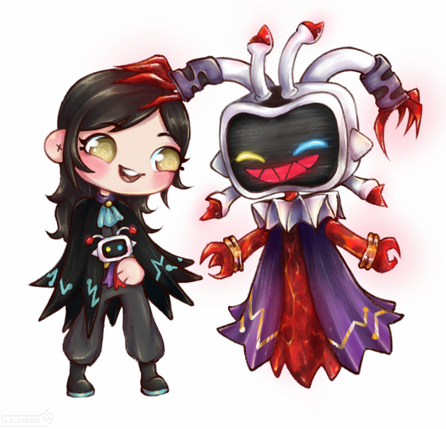 "Whoopsie! My fault again!"Reclusa is a theatrical, isolationist ancient bio-mechanical godlike computer-headed being who is the embodiment of loneliness and isolation. He has a childish yet sadistic demeanour, thriving on grand declarations and dramatic flair, often punctuated by his signature evil laugh “FWA-HA-HA-HAAA!”