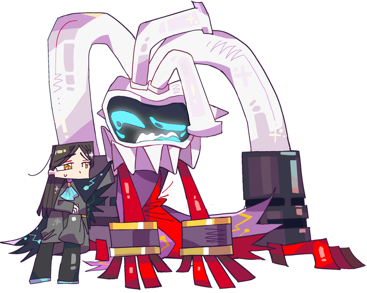 "Whoopsie! My fault again!"Reclusa is a theatrical, isolationist ancient bio-mechanical godlike computer-headed being who is the embodiment of loneliness and isolation. He has a childish yet sadistic demeanour, thriving on grand declarations and dramatic flair, often punctuated by his signature evil laugh “FWA-HA-HA-HAAA!”
